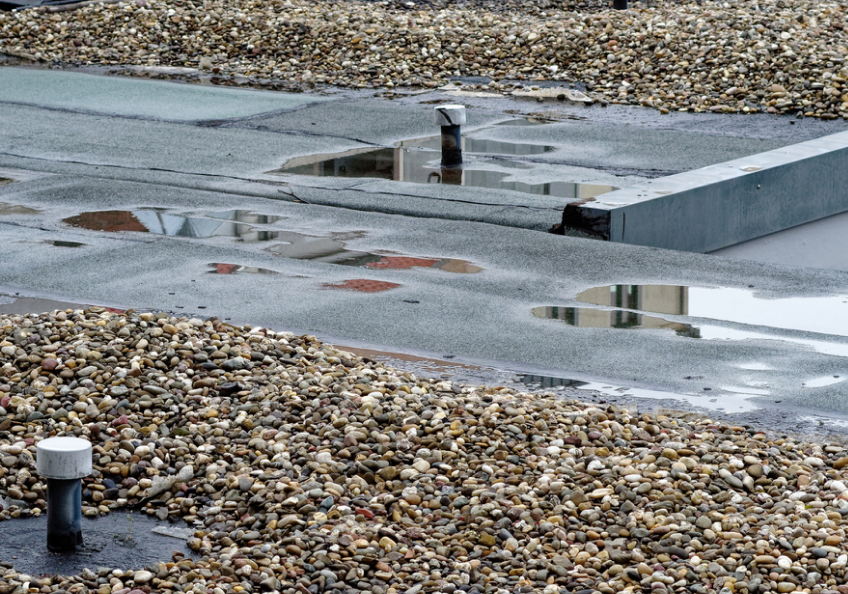 This system relies on weight to hold the membrane and its insulation in place by using gravel, stones, or pavers. When we inspect this system, we verify that the ballast is evenly distributed with no bare spots or areas where stones may have shifted. We look for displaced ballast around drains, edges, and penetrations, as wind can create bare patches that expose the membrane and uplift the roof system.